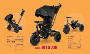 مدل ریتو ایر یک سه چرخه کاملا تاشو و بسیار سبک است که به خاطر ساختار متفاوتی که دارد باعث می شود تا حمل آن بسیار راحت تر شود. این سه چرخه امکانات بسیار زیادی مانند سایبان، ترمز، کمربند ایمنی، محافظ کودک، کلاچ چرخ جلو، عصای تنظیم شونده و آچار دارد.
