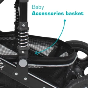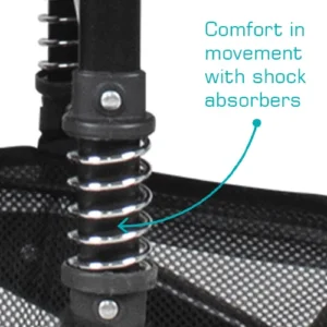 • سیستم تعلیق پیشرفته: دو کمک فنر تعبیه شده در کالسکه، ضربات ناشی از ناهمواری‌ها را به حداقل می‌رساند و سفری نرم و آرام را برای نوزاد شما رقم می‌زند.